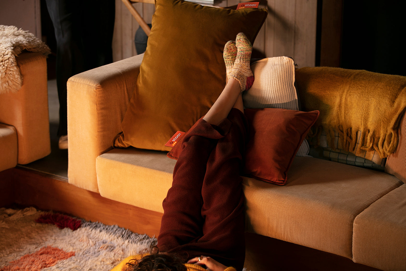 Get yourself a Stoov heated cushion or heated blanket. Infrared heating technology warms you up from the inside out, so you can stay comfy and warm (and you can easily warm hands and feet) wherever and whenever due to the cordless design.