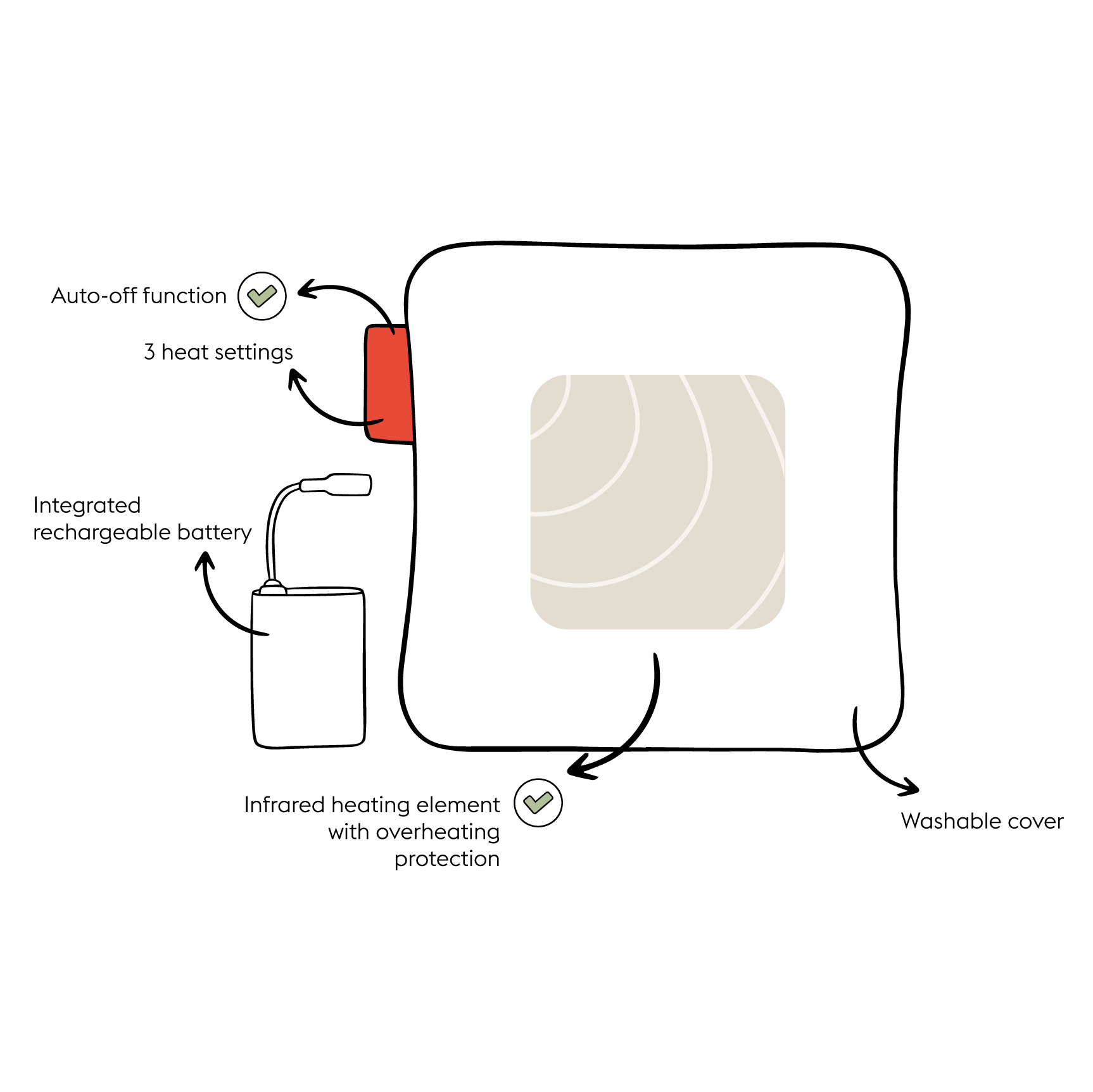 The Ploov is a cordless heating cushion with infrared technology and rechargeable battery.